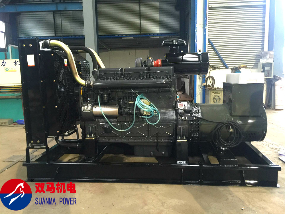 一臺黑色的720kw上海申動柴油發電機組今日已在我廠生產完成,目前正在等待打包裝車。這臺720kw上海申動柴油發電機組是組裝的開架式機組,主要安放置室內做常用電源。機組整體采用電子調速的方式調速,柴油機采購于上海申動原廠,發電機選用我公司自主生產的。