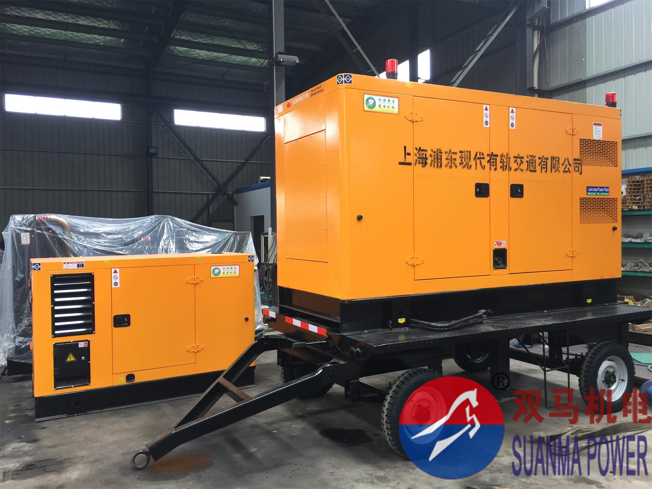 上海浦東現(xiàn)代有軌交通公司經(jīng)過多家考察比對(duì),最終選擇江蘇雙馬公司訂購(gòu)了移動(dòng)靜音發(fā)電機(jī)1臺(tái)作為試驗(yàn),機(jī)組采用上柴發(fā)動(dòng)機(jī)配江蘇雙馬無刷電機(jī),帶4輪移動(dòng)底盤,靜" />